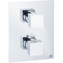 Назначение: душ • Конструкция: двухрычажный • Монтаж: вертикальный • Клапан: керамический • Материал: латунь, покрытие - хром • Подводка: жесткая • Монтажные отверстия: 2 отверстия • Термостат: есть • Душевая лейка в комплекте: нет • Донный клапан в комплекте: есть