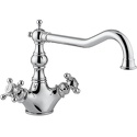 Назначение: кухонный • Конструкция: двухрычажный • Монтаж: горизонтальный • Материал: латунь, покрытие - медь • Монтажные отверстия: 1 отверстие • Форма излива: традиционная • Душевая лейка в комплекте: нет