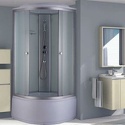 Закрытая кабина, полностенная, двери раздвижные, материал поддона: акрил, материал стенок: стекло, тропический душ, вертикальный гидромассаж, габариты (ШхВхД): 100x225x100 см