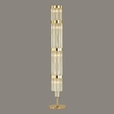 Торшер стиля лофт для гостиной, кабинета или спальни имеет размеры 300x1650 мм. Арматура светильника окрашена в золотой цвет. Лампы в комплекте - отсутствуют. В светильнике применяются лампы накаливания или светодиодная LED-лампа. Цвет плафонов - неокрашенный, с прозрачной поверхностью. Материал плафонов - стекло. Класс электробезопасности - II, степень пылевлагозащиты (IP) - 20. Максимальная мощность лампы (Вт) - 40. Светильник размещается на полу.