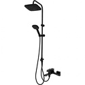 Душевая система. В комплекте: однозахватный смеситель для ванны с изливом, верхний душ d265 мм и ручной душ 110 мм с режимом самоочистки, регулируемый по высоте и наклону держатель, душевой шланг 1,5 м, керамический дивертор. Штанга с возможностью установки в старые отверстия. Цвет: черный матовый.