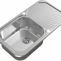 Форма чаши: прямоугольная • Материал: нерж. сталь • Количество чаш: 1 основная • Установка: врезная • Крыло: есть • Глубина чаши: 18 см • Измельчитель пищевых отходов: нет • Размеры: 79x43 • Мотажное отверстие: 79x43