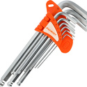 КомплектацияРазмеры ключей в наборе (в мм): 1,5; 2; 2,5; 3; 4; 5; 6; 8; 10. Для хранения и переноски в комплекте идет пластиковый держатель.
