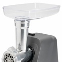 Номинальная мощность: 220 Вт • Реверс: есть • Производительность: 1.8 кг/мин • Насадки-решетки: Есть, 2 штуки (7 мм, 5 мм) • Насадки-терки: Есть, 2 • Насадки для шинковки: Есть, 1 штука • Резиновые ножки: есть • Лоток для подачи продуктов: пластик • Цвет корпуса: серый • Защита от перегрузки: есть • Время непрерывной работы: 10 мин • Максимальная мощность: 2000 Вт