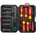 КомплектацияБиты: крестовые: РН0х2, РН1х2, РН2х2, PH3x4, PZ1, PZ2, PZ3; U-образные: U6, U8, U10, U12; шестигранные: Н2,5, НЗ, Н4, Н5, Н6; квадратные: SQ1, SQ2, SQ3; tri-wing (трехлистник): Y1, Y2, Y3, Y4; DR: #1, #2, #3; треугольник: 2,3, 2,6, 3,0; X: 6, 8,10; шлицевые: SL3x2, SL4x2, SL5x2, SL6x2, SL7x2; шестигранная звезда (с отверстием): Т8Н, Т10Н, Т15Н, Т20Н, Т25Н, Т27Н, ТЗОН, Т35Н, Т40Н; головки мини: М5, М6; головки: М5, М6, М7, М8, М9, М10, М11, М12, М13; отвертки: РН0х75, РН1х75, SL3х75, PH/SL2х75; отвертка под биты; переходник; тестер-отвертка, намагничиватель.