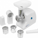 Номинальная мощность: 230 Вт • Реверс: нет • Производительность: 0.5 кг/мин • Размеры (ШxВxГ): 210x235x142 • Вес: 2.1 кг • Насадки-решетки: Есть • Насадки-терки: Есть • Насадки для шинковки: Есть • Соковыжималка: есть • Резиновые ножки: есть • Лоток для подачи продуктов: есть, пластик • Цвет корпуса: белый • Материал корпуса: пластик • Максимальная мощность: 1500 Вт
