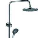 Устройство: душевая система • Смеситель: джойстик • Ручной душ (душевая лейка): размер 100 мм, настройки 3 шт • Верхний душ (тропический): размер 200 мм, настройки 1 шт • Комплектация: ручной душ, верхний душ, смеситель, стойка, шланг, крепление ручного душа