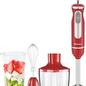 Тип: погружной (ручной) блендер • Мощность: 600 Вт • Скорости: 2 шт, импульсный • Насадки: ножка, венчики, нож измельчителя