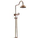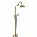 Устройство: душевая система • Смеситель: двухвентильный • Ручной душ (душевая лейка): настройки 1 шт • Верхний душ (тропический): настройки 1 шт • Комплектация: ручной душ, верхний душ, смеситель, стойка, шланг, крепление ручного душа • Покрытие: под золото