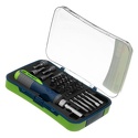 Комплектация- Отвертка реверсивная для бит 1/4".- Торцевые головки: 5, 7, 8, 9, 11 мм.- Биты 1/4", 25 мм: SL4, SL5, SL6, SL7, PH0, PH1, PH2, PH3, PZ0, PZ1, PZ2, PZ3, Т10, Т15, Т20, Т25, T27, T30, H4, H6, S0, S1, S2, S3.- Биты 1/4", 50 мм: SL5, SL6, PH1, PH2, PH3.