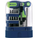Комплектация- Отвертка Т-образная реверсивная-Удлинитель 90 мм-Гибкий удлинитель 110 мм-Переходник для торцевых головок 1/4"-Торцевые головки: 6, 7, 8, 9, 10, 11SL3, SL5, SL6, PH0, PH1, PH2, PZ2, PZ3, T5, T6, SPAN 6, H3, H4, H5, H6, TW 2, TW3, TA2, TA3, TT10, TT15, TT20, TT25, TT30