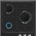 Поверхность: варочная панель • Тип поверхности: газовая • Рабочая поверхность: эмаль • Число конфорок: 3 • Установка: независимая • Газовые конфорки: всего - 3 • Газ-контроль конфорок: есть • Тип управления: механическое • Переключатели: поворотные • Электроподжиг: есть, автоматический • Размеры: 450x510 мм • Цвет: панель - черный