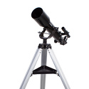 Короткофокусный ахроматический рефрактор с апертурой 70 мм. На оптические поверхности нанесено многослойное просветляющее покрытие. Телескоп снабжен оптическим искателем с 6-кратным увеличением. В комплект входят окуляры 10 мм и 25 мм. Труба устанавливается на азимутальную монтировку с алюминиевой треногой.