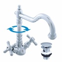 Назначение: для умывальника • Конструкция: с раздельными клапанами • Монтаж: горизонтальный • Клапан: керамический • Материал: покрытие - хром • Монтажные отверстия: 1 отверстие • Форма излива: традиционная • Душевая лейка в комплекте: нет • Аэратор: есть • Донный клапан в комплекте: есть