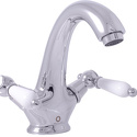 Тип: для умывальника, двухвентильный • Монтаж смесителя: настольный • Струя: высота 111 мм, глубина 142 мм, наклон 34 °