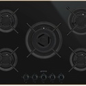 Поверхность: варочная панель • Тип поверхности: газовая • Рабочая поверхность: стеклокерамика • Число конфорок: 5 • Установка: независимая • Газовые конфорки: всего - 5 (1 конфорка "Тройная корона") • Газ-контроль конфорок: есть • Тип управления: механическое • Переключатели: поворотные • Электроподжиг: есть, автоматический • Размеры: 750x510x50 мм • Размер ниши для встраивания: 560x482 мм