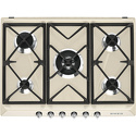 Поверхность: варочная панель • Тип поверхности: газовая • Рабочая поверхность: эмаль • Число конфорок: 5 • Установка: независимая • Газовые конфорки: всего - 5 (1 конфорка "Тройная корона") • Газ-контроль конфорок: есть • Тип управления: механическое • Переключатели: поворотные • Электроподжиг: есть, автоматический • Размеры: 700x500x32 мм • Размер ниши для встраивания: 560x482 мм • Цвет: панель - кремовый