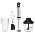 Комплектацияблок электродвигателяS-образный ножнасадка-блендернасадка-венчикпереходник для насадки-венчикачаша измельчителя с крышкойстакан для смешиванияруководство по эксплуатации и гарантийный талон