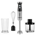 Комплектацияблок электродвигателяS-образный ножнасадка-блендернасадка-венчикпереходник для насадки-венчикачаша измельчителя с крышкойстакан для смешиванияруководство по эксплуатации и гарантийный талон