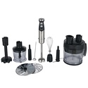 Комплектация- блок электродвигателя;- большая чаша с крышкой;- малая чаша с крышкой;- стакан для смешивания с крышкой;- насадка-блендер;- насадка-венчик;- насадка-вспениватель молока;- переходник для насадки-венчика и насадки-вспенивателя молока;- насадка с двумя венчиками;- переходник для насадки с двумя венчиками;- насадка для нарезки кубиками;- насадка для шинковки/терки;- S-образный нож (2 шт.);- горизонтальный нож;- съемная втулка;- толкатель;- приспособление для очистки решетки;- руководство по эксплуатации;- сервисная книжка.