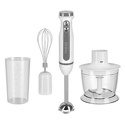 Комплектация- блок электродвигателя;- чаша измельчителя с крышкой;- стакан для смешивания;- насадка-блендер;- насадка-венчик;- переходник для насадки-венчика;- S-образный нож;- руководство по эксплуатации;- сервисная книжка.