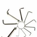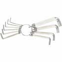 Артикул № 822280 Набор ключей Hex предназначен для работы с крепежом, оснащенным внутренним шестигранным гнездом. Ключи изготовлены из углеродистой стали, никелированное покрытие. Твердость рабочей части — 45 HRС. Для удобства хранения ключи закреплены на кольце.
