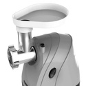 Реверс: есть • Производительность: 2.2 кг/мин • Насадки-решетки: Есть, 3 штуки • Прочие насадки: для приготовления кеббе, для приготовления колбас • Резиновые ножки: есть • Лоток для подачи продуктов: есть, пластик • Цвет корпуса: серебристый • Материал корпуса: пластик • Защита от перегрузки: есть • Максимальная мощность: 1800 Вт
