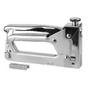 Пистолет скобозабивной от производственной компании "STAYER", серии "MASTER" ("Мастер"). Корпус инструмента изготовлен из прочного пластика с защитным покрытием, элементы механизма металлические. Ручка разработана с учетом анатомических особенностей руки, обеспечивая при выполнении работы удобство. Пистолет оборудован захватом рычага для безопасного хранения.