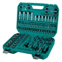 Комплектация- Ключ трещоточный 1/4" - Ключ трещоточный 1/2"- Головки торцевые 1/4" 13 шт: 4, 4.5, 5, 5.5, 6, 7, 8, 9, 10, 11, 12, 13, 14 - Головки торцевые 1/2" 18 шт: 10, 11, 12, 13, 14, 15, 16, 17, 18, 19, 20, 21, 22, 23, 24, 27, 30, 32- Головки торцевые удлиненные 1/4" 8 шт: 6, 7, 8, 9, 10, 11, 12,- Головки торцевые удлиненные 1/2" 4 шт : 14, 15, 17, 19 - Биты с торцевыми головками 17 шт: PH1, PH2, SL4, SL5.5, SL7, PZ1, PZ2, H3, H4, H5, H6, T8, T10, T15, T20, T25, - Биты 15 шт: Н8, Н10, Н12, Н14, PH4, PH3, SL8, SL10, SL12, PZ4, PZ3, T55, T50, T45, T40 - Адаптер для бит 1/4" - Шестигранные ключи 3 шт: 2.5 мм, 2 мм, 1.5 мм - Отвертка-битодержатель - Гибкий удлинитель 1/4" - Удлинители 1/4" 100 мм и 50 мм - Головки свечные 21 мм и 16 мм - Кардан на 1/2" и 1/4" - Удлинитель 1/2" 125 мм - Вороток на 1/2" и 1/4 - Переходник с 1/2" четырехгранника на шестигранник Н 5/16
