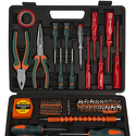 Комплектация- Диэлектрические отвертки 6 шт: SL:3x100 мм, 5.5x125 мм, 6.5x150 мм, PH:PH0x60 мм, PH1x80 мм, PH2x100 мм;- Ударные отвертки 7 шт: SL:6 x38 мм, 5 x75 мм, 6 x100 мм, 8 x150 mm, PH:PH2x38 мм PH1x75 мм, PH2x100 мм;- Биты 40 шт: SL:3,4x2 шт,5x2 шт,6x2 шт, 7,8; PH:PH0x2 шт, PH1x4 шт, PH2x4 шт, PH3x3шт; PZ:0,1,2,3; Torx:10,15,20,25,30,40; R:0,1,2,3; H:2,3,4,5,6,3/32,1/8,5/32,3/16,1/4; - Головки 9 шт 1/4": 5, 6, 7, 8, 9, 10, 11, 12,13 ; - Головки 9 шт 3/8":9, 10, 11, 12, 13, 14, 15, 16,17;- Ключи шестигранные 8 шт:1.5, 2, 2.5, 3, 4, 5, 5.5, 6; - Отвертка с набором бит 6 в 1;- Разводной ключ 150 мм,- Тонкогубцы 150 мм,- Бокорезы 150 мм,- Нож;- 3/8 " Рукоятка с реверсом;- 3/8" Головка для свечи зажигания,- 3/8" Удлинитель 75 мм,- 1/4" & 3/8" Адаптер