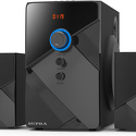 Режим звучания: 2.1 • Суммарная мощность колонок: 100 Вт • Количество колонок: 2 • Сабвуфер: есть • Мощность сабвуфера: 50 Вт • Количество полос колонок: однополосные • Эквалайзер: есть • Радиотюнер: есть • Диапазоны: AM, FM • Поддержка карт памяти: SD • USB-хост: есть • Bluetooth-адаптер: есть • Аудиовходы: линейный RCA, микрофон x 2 • Питание от сети: есть • Дисплей: есть • Пульт: есть • Цвет: черный