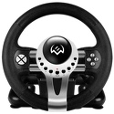 проводной руль для ПК; руль 25.4 см; угол поворота 180°; оплетка - резина; крестовина (D-pad) есть; педали - газ, тормоз; коробка передач есть; виброотдача есть; обратная связь вибрация; подключение - USB.