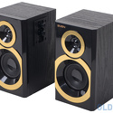 +Мощность в 20 Ватт, играют на максимальной громкости очень и очень ощутима, к тому же даже на максимальной громкости звук никоим образом не искажается и всё звучит исключительно отбалансированно, то есть не нужно подолгу сидеть в эквалайзере чтобы для каждой композиции был нормальный звук, они и так играют шикарно; +Яркие полоски золотистого цвета не так и сильно выделяются на фоне чёрного корпуса как может показаться на первый взгляд, дизайнерское решение весьма удачное; +Цена. И к тому же они сделаны из хорошего МДФ, совершенно не склоны как-то коверкать звук в любых композициях и т.д. Они просто нормально играют.