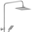Устройство: душевая система • Ручной душ (душевая лейка): размер 80 мм, настройки 1 шт • Верхний душ (тропический): размер 300 мм, настройки 1 шт • Комплектация: ручной душ, верхний душ, стойка, шланг, крепление ручного душа, мыльница