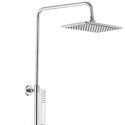 Устройство: душевая система • Ручной душ (душевая лейка): размер 36 мм, настройки 1 шт • Верхний душ (тропический): размер 300 мм, настройки 1 шт • Комплектация: ручной душ, верхний душ, стойка, шланг, крепление ручного душа, мыльница