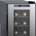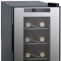 Тип: однокамерный винный шкаф • Расположение: отдельностоящий • Количество компрессоров: 1 • Цвет: зеркальный • Размеры (ШxВxГ): 254x463x514 мм • Количество дверей: однодверный • Общий объем: 21 л • Винный шкаф: 8 бут. • Управление: электронное • Освещение в холодильной камере: есть • Материал полок: металл-хром • Класс энергопотребления: A+