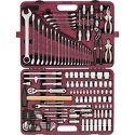 Набор: 101 шт • Ключи: комбинированные, разрезные, разводной • Головки: 6-ти гранные головки, головки E-профиль, свечные • Ключей-трещоток: 2 шт • Хранение: пластиковый кейс