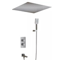 Устройство: душевая система • Смеситель: термостатический • Ручной душ (душевая лейка): размер 80 мм, настройки 3 шт • Верхний душ (тропический): размер 500 мм, настройки 1 шт • Комплектация: ручной душ, верхний душ, смеситель, шланг, крепление ручного душа