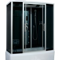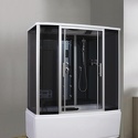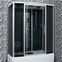 Закрытая кабина, полностенная, комбинированная с ванной, двери раздвижные, материал стенок: стекло, тропический душ, вертикальный гидромассаж, габариты (ШхВхД): 88x220x140 см