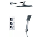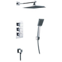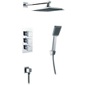 Устройство: душевая система • Смеситель: термостатический • Ручная лейка: размер 60 мм, настройки 1 шт • Верхний душ: размер 200 мм, настройки 1 шт • Комплектация: ручной душ, смеситель, шланг, крепление ручного душа