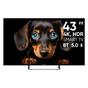 LCD телевизор • 43" • 3840 x 2160 • поддержка HDR • выход в интернет • цифровой тюнер DVB-T2 • DVB-T • DVB-S2 • DVB-C • вес 6 кг