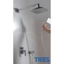 Производитель: Tres Модель: Loft-20018002 - Устройство: душевая система - Смеситель: джойстик - Ручная лейка: настройки 1 шт - Верхний душ: размер 220 мм, настройки 1 шт - Комплектация: ручной душ, смеситель, шланг, крепление ручного душа Описание