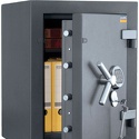 Сейф • взломостойкость класс V • замок ключевой/кодовый электронный • внутренний объем 77 л • внешние размеры 670x510x510 мм • вес 215 кг
