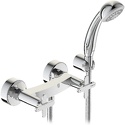 Покрытие - Хром, Термостат - Нет, Присоединительный размер - 1\2", Количество монтажных отверстий - 2, Ширина - 17.3, Материал корпуса - Латунь, Встраиваемый - Нет, Тип подводки - Жесткая, Комплектация - Смеситель, шланг, лейка, фиксируемый держатель лейки,набор креплений, инструкция, паспорт, гарантийный талон, Система быстрого монтажа - Да, Тип - Двухзахватный, S-образные эксцентрики - Есть, Назначение - Для ванны и душа, Цвет - Серебристый, Форма излива - Отсутствует, Глубина - 13, Высота - 7, Донный клапан - Нет