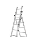 Лестница алюминиевая ВИХРЬ ЛА 3х10 может трансформироваться в зависимости от характера работ. Модель можно использовать как стремянку, стремянку с выдвижной третьей секцией, приставную лестницу. Выдерживает нагрузку до 150 кг. Корпус с антикоррозийным покрытием, изготовлен из алюминия. Благодаря пластиковым наконечникам ножек лестница не скользит по поверхности. Модель компактная, удобно хранить благодаря механизму трансформации. Поперечная траверса надежно фиксирует лестницу на поверхности.