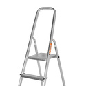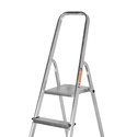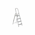 Стремянка Прочная алюминиевая рама из профиля прямоугольного сечения Высокая дуга безопасности 600 мм Большая противоскользящая платформа Идеальна для домашнего использования Профилированные противоскользящие ступеньки шириной 80 мм Защитные наконечники ножек, препятствующие скольжению стремянки Многократное клепанное соединение ступенек с рамой Характеристики: Количество ступеней: 4 Материал: алюминий МАХ нагрузка: 150 кг Вес: 3.1 кг Размеры: Длина секции со ступенями: 1.48 м Ширина секции со ступенями