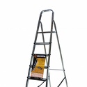 Стремянка Прочная алюминиевая рама из профиля прямоугольного сечения Высокая дуга безопасности 600 мм Большая противоскользящая платформа Идеальна для домашнего использования Профилированные противоскользящие ступеньки шириной 80 мм Защитные наконечники ножек, препятствующие скольжению стремянки Многократное клепанное соединение ступенек с рамой Характеристики: Количество ступеней: 8 Материал: сталь МАХ нагрузка: 150 кг Вес: 10.4 кг Размеры: Длина секции со ступенями: 2.42 м Ширина секции со ступенями
