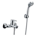 Назначение: ванна+душ • Конструкция: однорычажный • Монтаж: вертикальный • Клапан: керамический • Материал: латунь, покрытие - хром • Подводка: жесткая • Монтажные отверстия: 2 отверстия • Форма излива: традиционная • Душевая лейка в комплекте: есть • Держатель для душевой лейки: настенный держатель • Аэратор: есть • Донный клапан в комплекте: есть