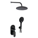 Устройство: душевая система • Смеситель: джойстик • Ручной душ (душевая лейка): размер 120 мм, настройки 3 шт • Верхний душ (тропический): размер 225 мм, настройки 1 шт • Комплектация: ручной душ, верхний душ, смеситель, шланг, крепление ручного душа