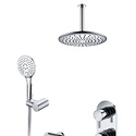 Термостатический картридж Vernet (Франция). Обратный клапан Neoperl. Переключатель на 3 выхода. Душевая насадка Ø 400 мм, 248 форсунок, нержавеющая сталь. Лейка 3-функциональная с системой защиты от известковых отложений. Комплект скрытого монтажа. Наружная часть смесителя.